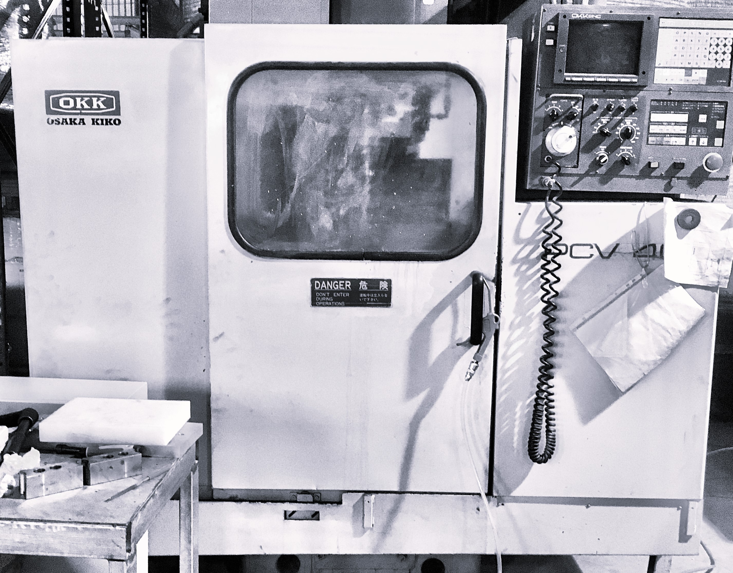 A CNC machine processes a piece of material (metal, plastic, wood, ceramic, stone, or composite) to meet specifications by following coded programmed instructions and without a manual operator directly controlling the machining operation.